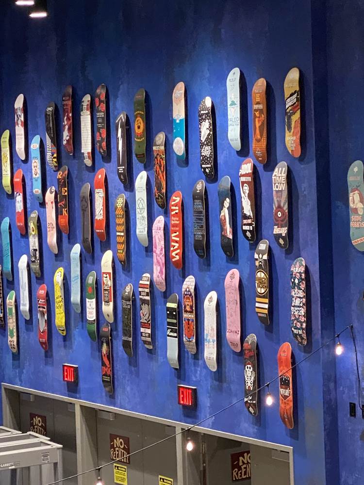 Something especially unique and location specific that I truly enjoyed (aside from the food, likely my favorite part of the venue as a whole) are the walls as you enter the music hall. Displayed along these walls are custom skateboard decks that are given to artists who have sold out this particular venue’s music hall. While you may scour the pictures below looking for what groups you can spot, I can promise you it's more fun to do it on the actual walls.