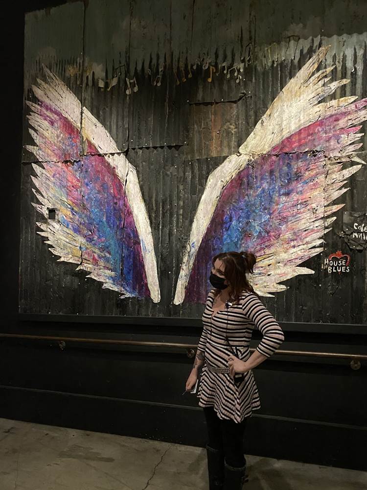 House of Blues, as a brand, is also known for their art collection, and also is in possession of one of the largest private collections of American Folk Art on permanent display. Across the 11 House of Blues locations, more than 7,000 pieces can be seen. The Anaheim location is home to many of these, as well as custom art pieces. Audrey Kawasaki and Johnny Rodriguez, also known as KMNDZ, are featured in this location, with Kawasaki’s “Shine On” piece on display in the Restaurant and Bar area, and Rodriguez’s piece in the entrance of the main music hall.