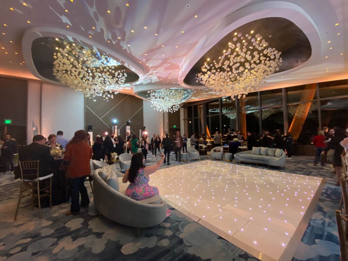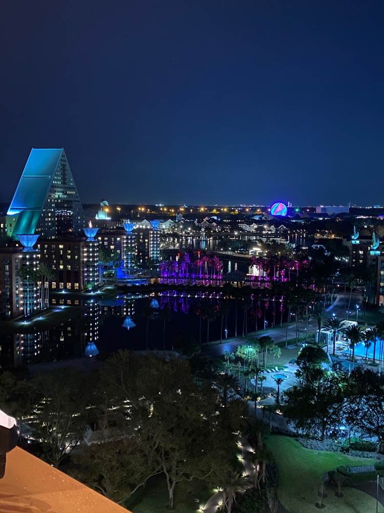 Also in the video above, you’ll see some of the other locations we’ve already discussed in video form! But now, let’s talk about the standout venue space at the Walt Disney World Swan Reserve, the Vue. Located high above Walt Disney World (14 floors up), the Vue offers, well, a spectacular VIEW of the whole of the Walt Disney World Resort. From the venue space and their enormous floor-to-ceiling windows, you can look one direction and see the Magic Kingdom, and look another and see Disney’s Hollywood Studios. The outdoor terrace, which can also be set up with tables and their own standalone bar, offers a phenomenal view of the Crescent Lake/EPCOT Resort Area, including the Walt Disney World Boardwalk and Yacht and Beach Clubs, but more importantly Spaceship Earth, EPCOT, and the nightly fireworks spectacular, Harmonious.