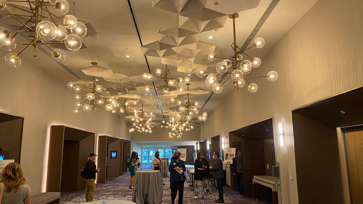 While we were there, we got a closer look at the ballrooms all set up for both a wedding ceremony, as well as a wedding reception. The hallway connecting the two spaces was also set up as it would be during a cocktail hour/pre-reception for such an event.