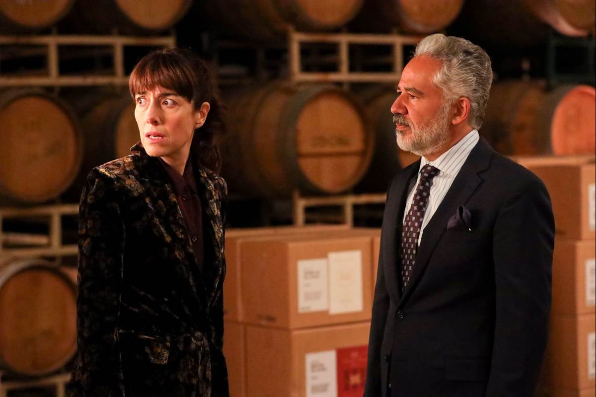 Lettie goes to the barrel room and finds Joe swamped with work and stressed, telling her he needs to cancel dinner. She reminds him that she had something important to discuss, but she is distracted when she sees Antonio leading Marta into a meeting room, asking why Marta is there. “She’s been the eyes and ears of Heritage House for 35 years,” Joe says. “She must know something.” Lettie follows Joe into the room and watches as he and Antonio question Marta, who says she knows nothing about the bones while playing with a bracelet on her wrist. Joe gets angry and Antonio asks Lettie to take Joe to dinner, but he says he’s not going and instead leaves to work on preparations for the harvest.