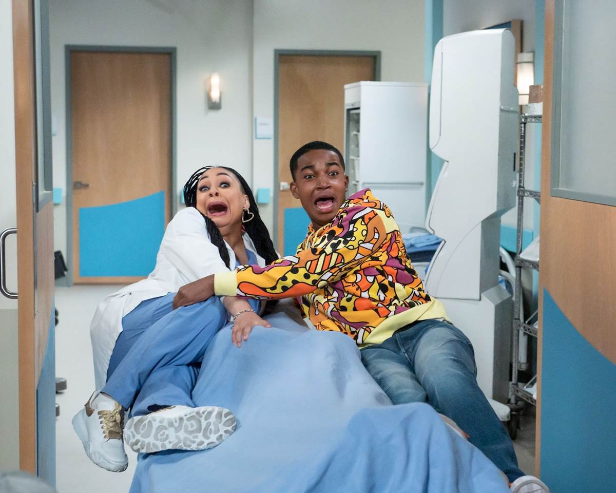 Booker introduces Ivy to Raven, who will watch Alice while the two of them go looking for Victor. They find him but have to duck to avoid being seen by the receptionist. While hiding, another patient on a bed is put next to Victor, both of their faces covered by their blankets. Victor gets wheeled away by mistake and Raven and Booker continue wheeling the other gurney down the hallway. When the receptionist sees Raven and recognizes her, she chases them and they burst through a door that leads to stairs, rolling down and waking up the other patient. Down in the lobby, they see Victor being wheeled out by Neil as a doctor rushes to the side of the other patient and says “I can’t believe we lost him.” Raven realizes her mistake and her dad can’t believe she still gets into this kind of trouble, saying “That’s so Raven!”