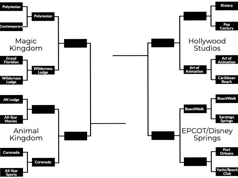 Before we move on to today’s matchup, let’s take a look at our last result. We had our first “upset” of the tournament, if you can call a 3-seed beating a 2-seed an upset. Despite Doobie voting 47 times from various burner accounts, Wilderness Lodge defeated Grand Floridian with a little more than 60% of the vote. This sets up our fist second-round matchup as Wilderness will go up against the Polynesian in the Elite 8.
