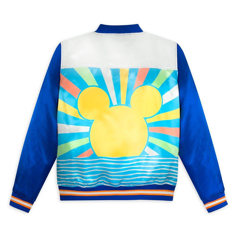 Mickey is depicted as the rising sun on the back of this retro satin bomber jacket. This blast from the past also features a heart-shaped appliqué on front shoulder.