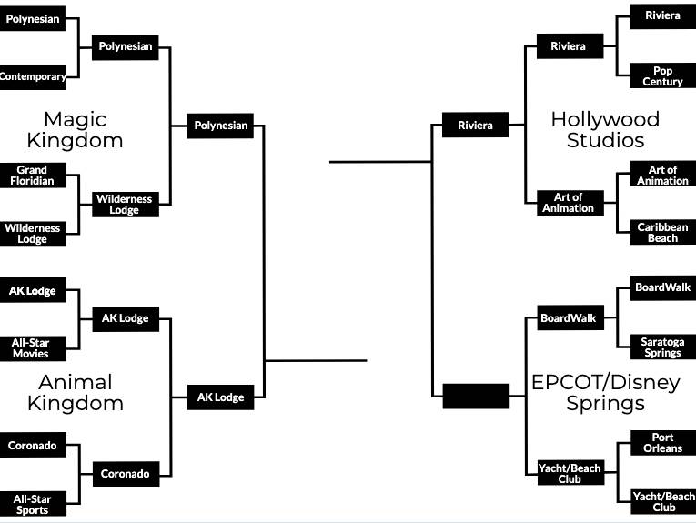 With the final spot in the Final 4 and the EPCOT/Disney Springs region on the line. BoardWalk Inn and Villas goes up against the Yacht and Beach Club resorts. It’s the battle of the BoardWalk as these two (really three) beloved resorts are just a short walk from each other. With all of the same amenities available this is really going to come down to theme preference and the personal experiences of those voting in this matchup. It should be a very close one.