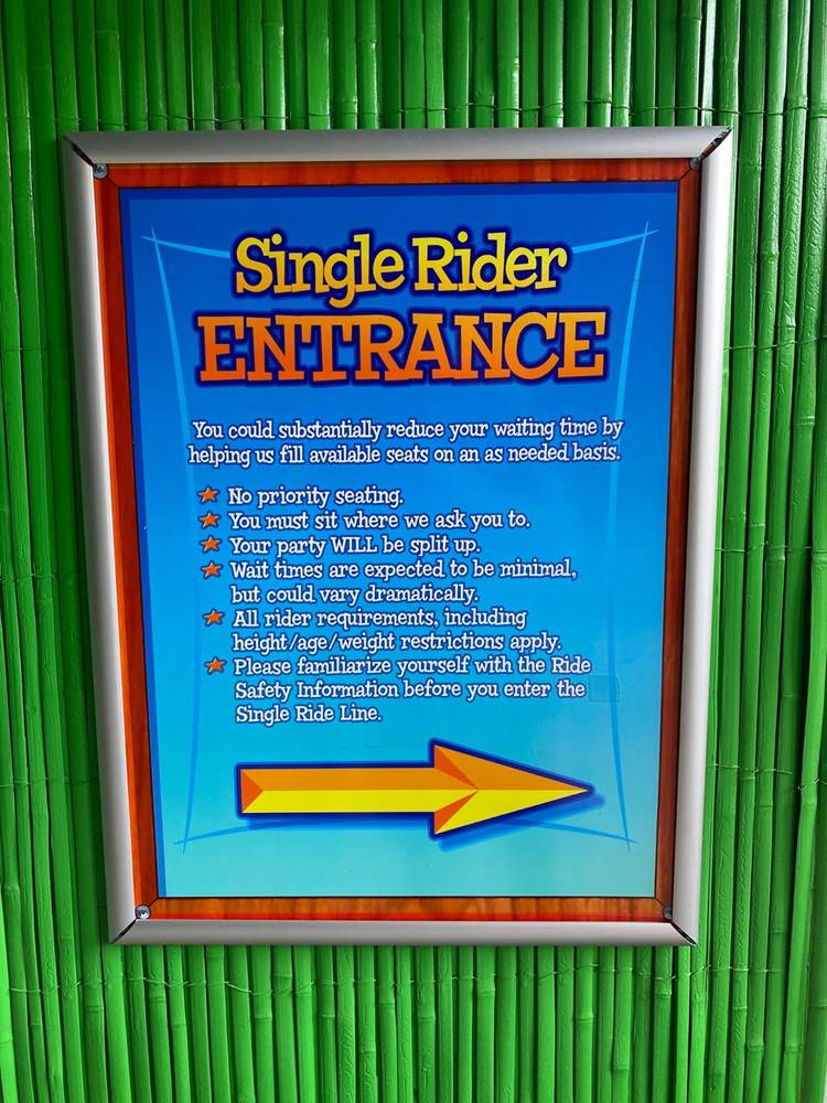 Also new to Tatsu is a Single Rider line, located through the attraction’s exit. I used this option and pretty much walked right on the ride, even though the regular queue was at a 2 hour wait! I’m not sure whether it’s new or not, but there is also a Single Rider option for The Riddler’s Revenge as well.