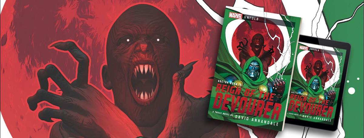 Reign of the Devourer: A Marvel Untold Novel from Aconyte Books and author David Annandale, is a look at a brand new story for the character from a very different angle. He may have always been a villain to us, but as the dictator of a nation, Doom has plenty of people who love him. And with that being the case, he will always be the hero of his own story.