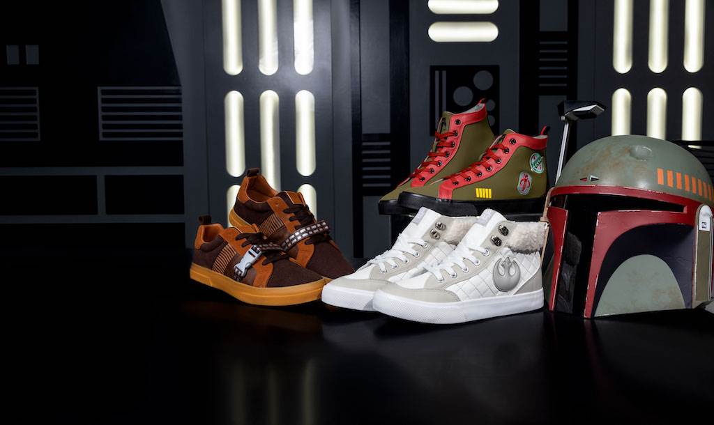 Kick your fashion into high-top (or low-top) gear with three new shoes inspired by some of the greatest characters in the Star Wars universe. Chewbacca, Leia and Boba Fett lend their personal fashions and personalities to these adult shoes that are available for pre-order exclusively from Fun.com.