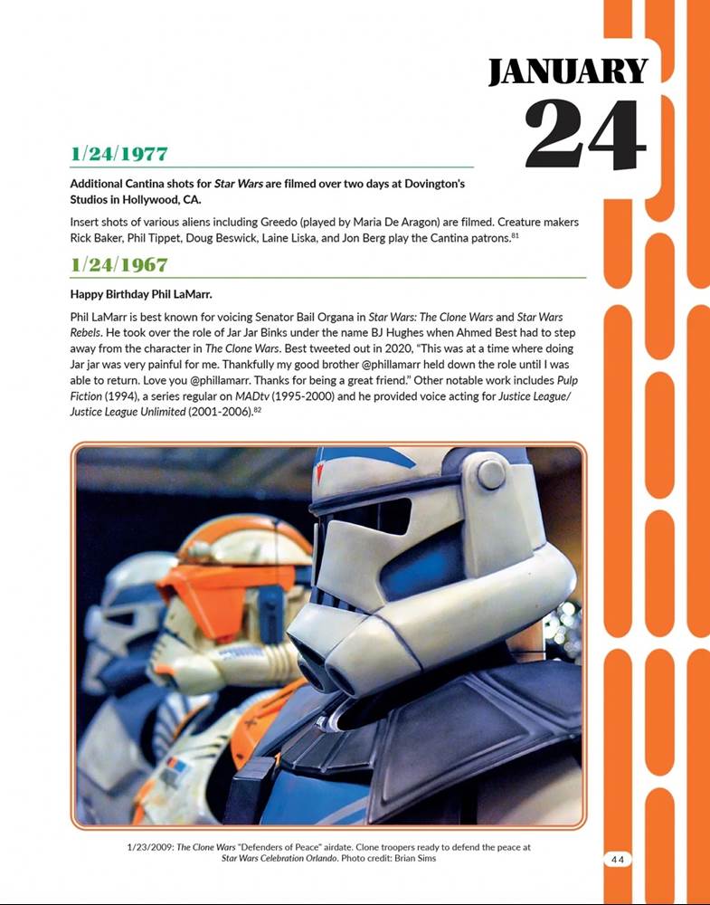 It’s a similar premise to the officially licensed Star Wars: Year By Year - A Visual History, which came out in 2021 from publisher DK, but Today in Star Wars History takes a different organizational approach (by date instead of chronologically, if that description makes sense) and a much deeper dive into the minutiae of Star Wars-related releases, momentous occasions, and birthdays of cast and crew members.