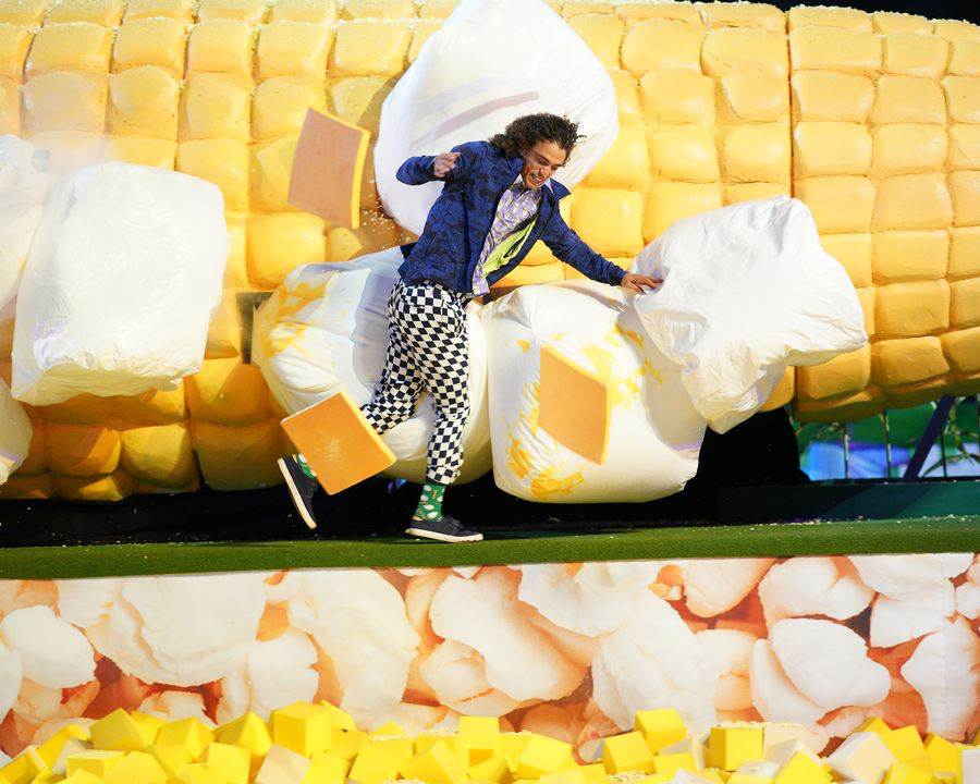As a reminder, in Corn Hole, contestants must putt down a straight path onto the green before the sprint down alongside an exploding ear of corn. They have only a brief window in which they can make it before airbag kernels deploy out of the ear of corn and knock them into a pit of foam kernels, garnering a stroke penalty. Matthew slipped on the take off of his sprint, making it only about halfway before the explosion knocked him into the pit. Pierre didn’t fare much better, leaning poorly into her run where she made it just as far before the explosion took place.