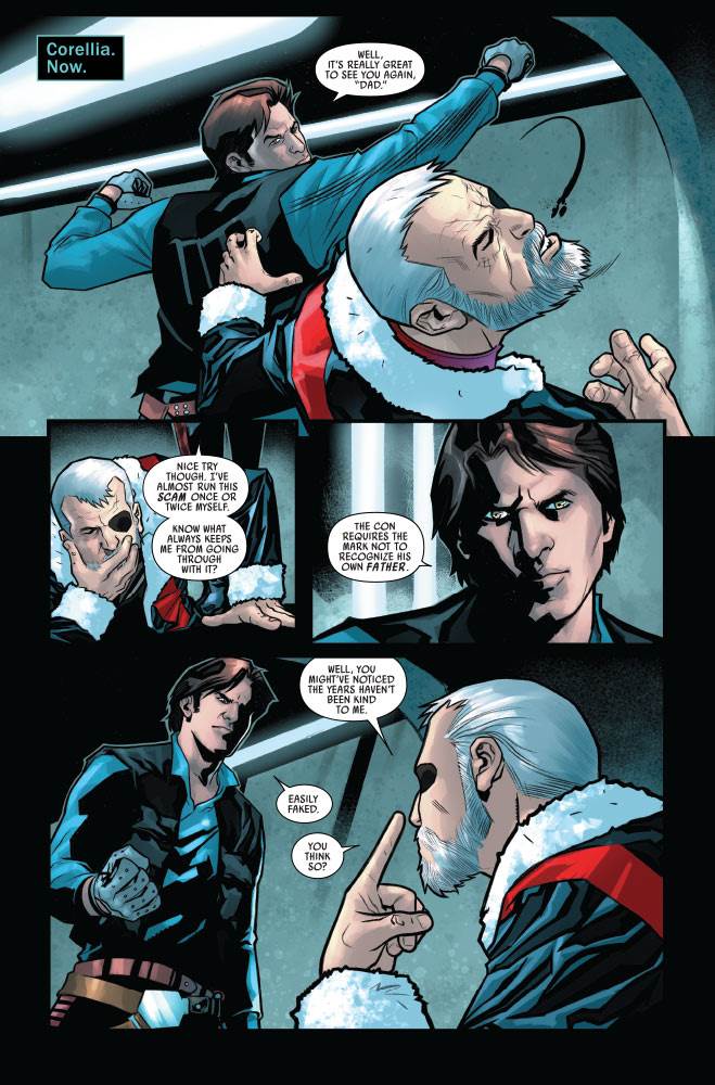 In the shocking cliffhanger ending of the first issue of Marvel’s new Star Wars: Han Solo & Chewbacca comic-book miniseries, Han ran into an older man claiming to be his father in a Corellian bar. Of course my first thought at that point was, “That can’t really be Han’s dad."