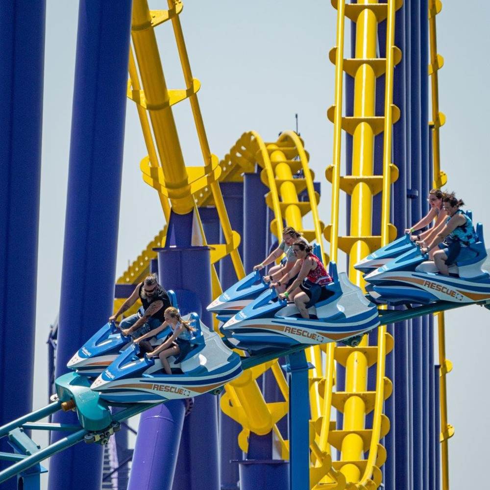 Wave Breaker: The Rescue Coaster is a really unique, more family-oriented ride. Themed around SeaWorld’s animal rescue efforts, this launch coaster starts with a somewhat themed pre-launch section, before blasting riders into the layout which sprawls over and near the lake in the middle of the park. The setting elevates what would be a rather mundane launch coaster into a far more unique one. Additionally, you’re sitting in seats designed to look and feel like a jet ski, which adds another fun element to the ride. I would compare the ride experience of Wave Breaker to Hagrid’s Magical Creatures Motorbike Adventure at Islands of Adventure, albeit not as intense and definitely not as well themed.