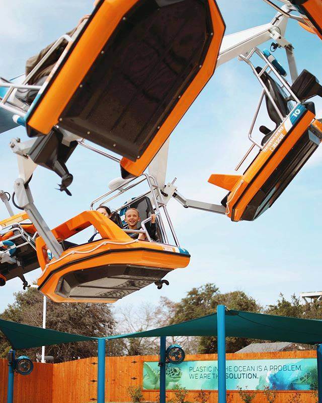 Tidal Surge is the newest attraction at SeaWorld San Antonio, and boy is it a rush. The type of ride is called a Screamin’ Swing, manufactured by S&S. The arms build up speed each time they swing, eventually getting up to a top speed of 68 mph, with a dynamic swing height of 135 feet. Mind you, those swings are taken looking straight down, either at the ground or the park’s lake, depending on which side you’re riding. Those max swings create some of the most insane airtime I’ve ever experienced, where I was literally levitating in my seat for a good 4-5 seconds. Mix that with a perfect location alongside the water’s edge, and you have an exhilarating new attraction for the park.