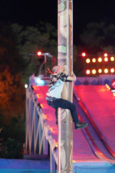 Now, it’s time for The Pecker. Tyler takes on Okky (as in Okky Dokie) when facing the giant bird. Tyler misses the good channel that will almost secure a spot next to the hole, but his lesser channel has actually knocked him into a good spot and just misses a hole in one. His jump gets him a good grip on The Pecker, but he fails to move forward to get the feather and falls into the pit below. Okky also misses the good channel and ends up less fortunate than Tyler, getting the big kick to the right and is quite far from the tee. However, Okky has skills when it comes to the jump, and he lands beautifully on the Pecker, securing the feather and sparing himself the stroke penalty. However, he is so far he has to use that extra stroke and still misses, with Tyler making his substantially closer shot and moves on.