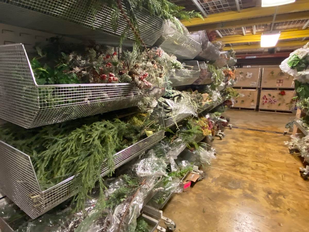 Since 1996, this building has been the central hub for holiday decor at the Walt Disney World Resort. Before that? It was a food processing facility that now plays host to faux glittery ice and snow instead of frozen edible delights. Throughout the building, which felt very much like a Costco or IKEA, yet somehow more organized, you’ll find aisle after aisle of ornaments, ribbon, garland, and a full section they lovingly refer to as the “artificial forest."