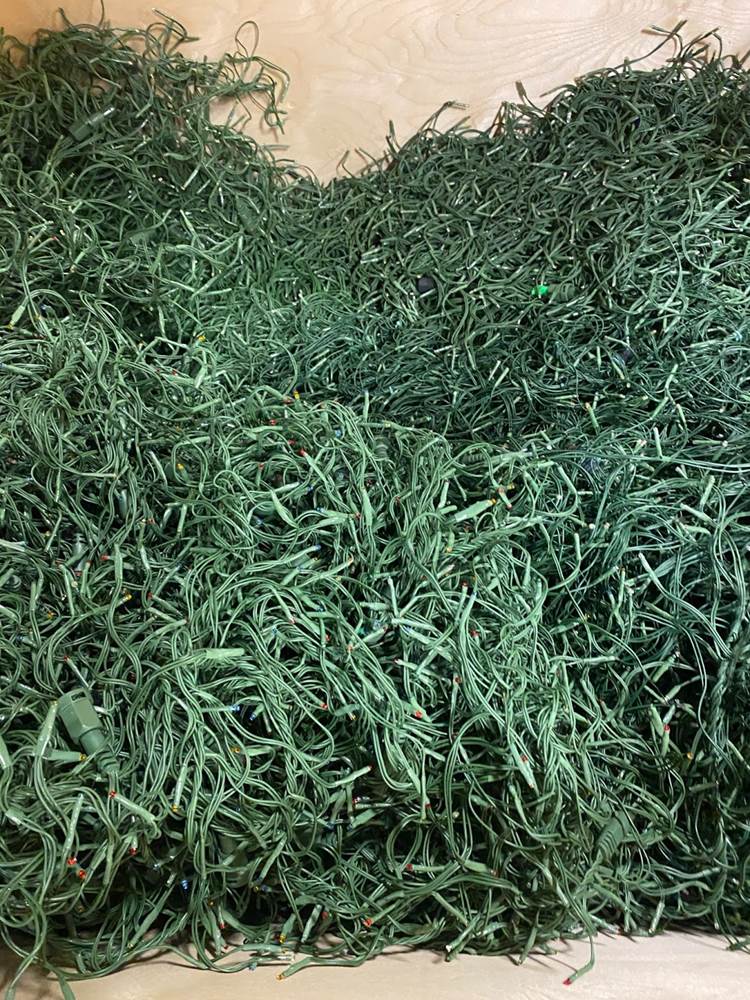We were fortunate enough to see this in play, as a team of Cast Members readied some garland for installation.
