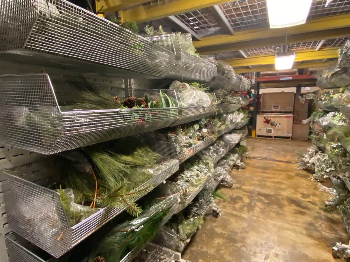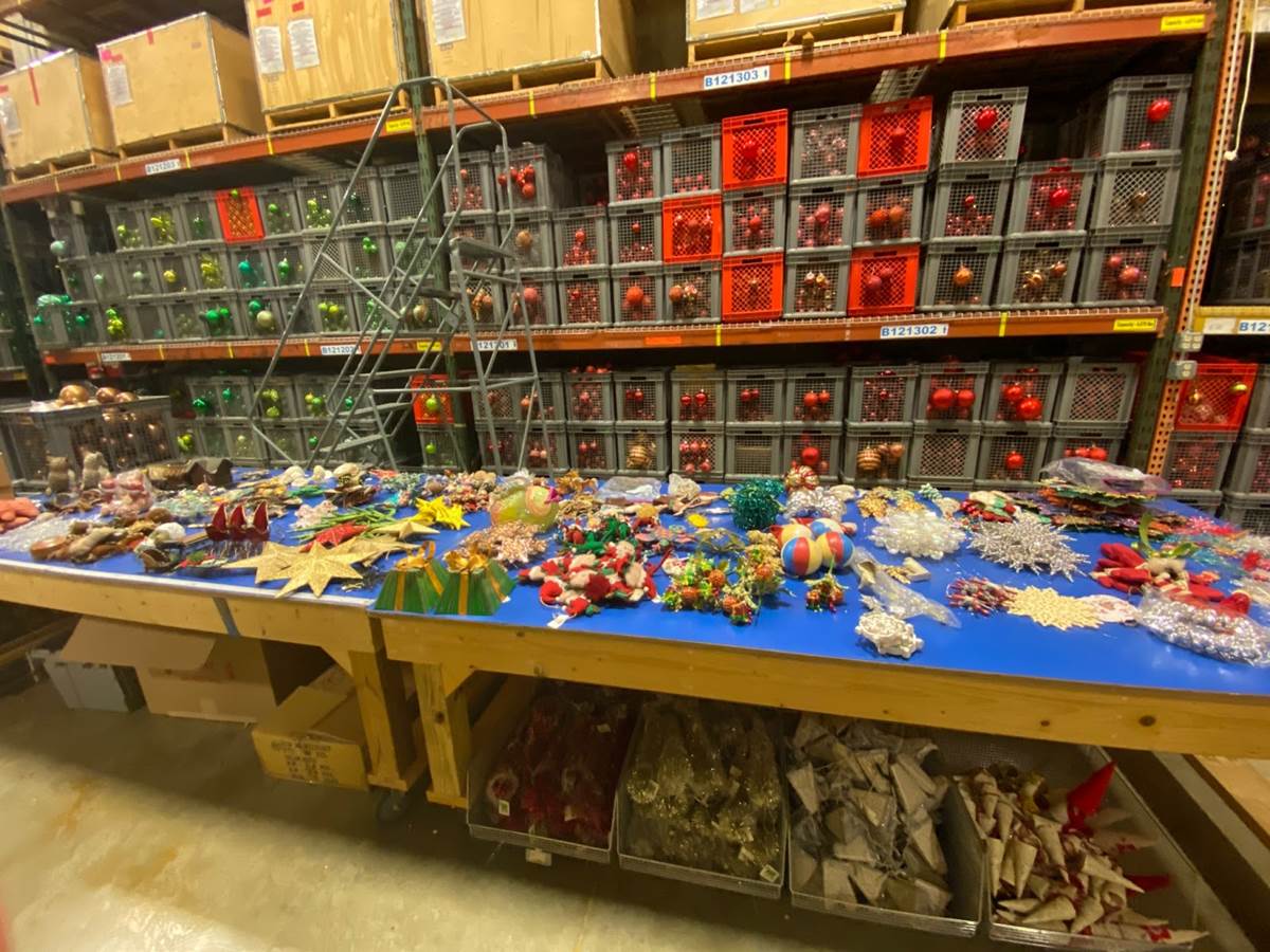 Earlier, we were invited to celebrate Halfway to the Holidays at the Walt Disney World Resort by taking a rare look into the Holiday Services warehouse. Nearly every ornament, light bulb, ribbon, or string of garland seen at Walt Disney World theme parks, resort hotels, and even the Disney Cruise Line fleet passes through this facility for refurbishment and storage before returning to their seasonal display on site.