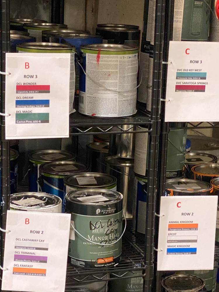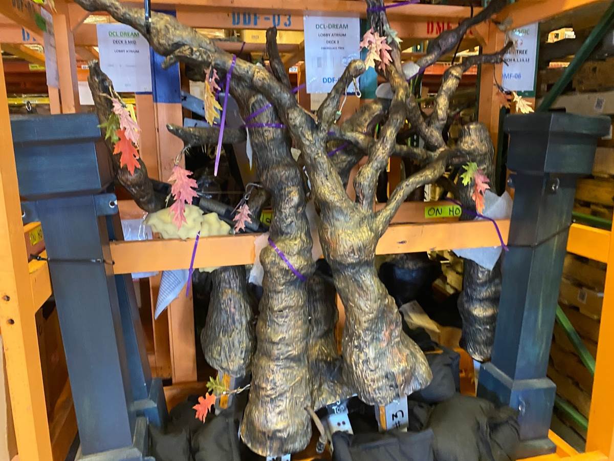 These are where the Halloween trees, featured in the atriums of the ships across the Disney Cruise Line fleet, are stored. They’re notably missing though as they are on their way to their respective locations to get ready for “Halloween on the High Seas." Fortunately, we were able to see some of the branch work that hasn’t left the facility yet. You’ll also note that under each ship name, is the name of the tree, each with a correlating backstory. Not seen here however, is the tree for the Disney Wish, which is named “Boo."
