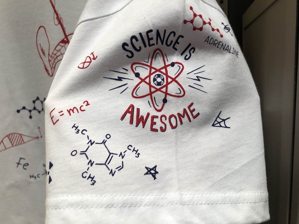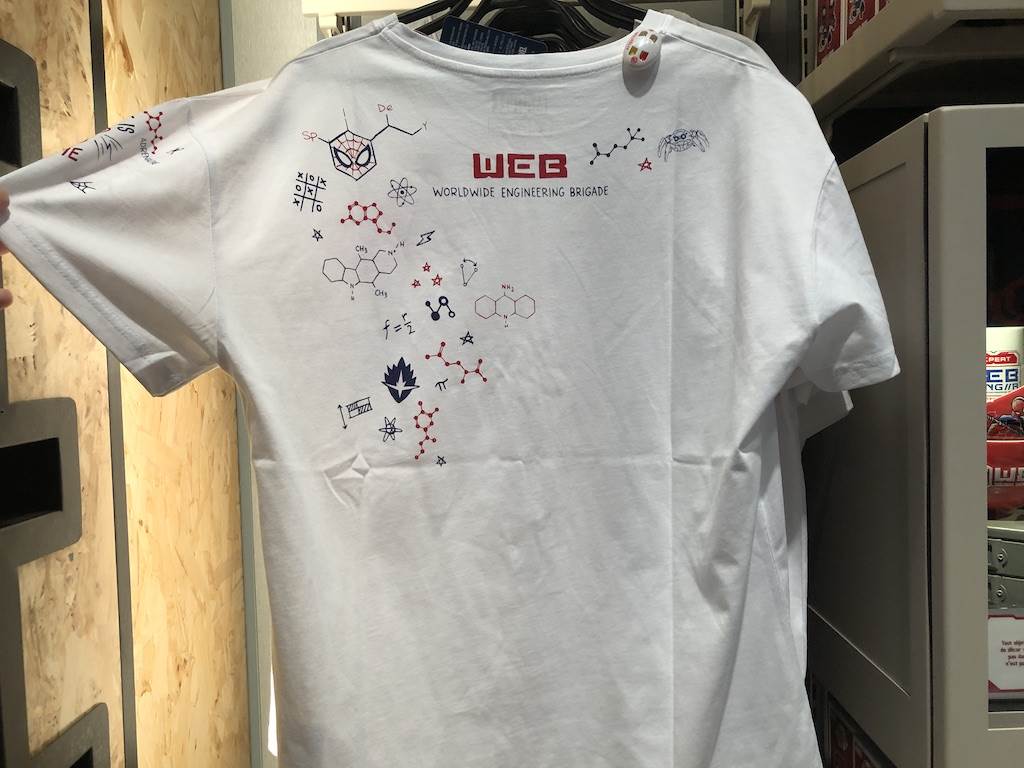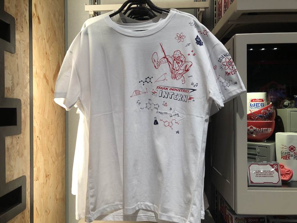 In a similar vein, adults can share their love of science with a “Stark Intern" shirt (starring Spider-Man and some of his recent doodles. While working as part of the Worldwide Engineering Brigade aka W.E.B., he’s used his down time to draw molecular structures, Black Panther’s mask, Spider-Man and Guardians of the Galaxy’s logos and even a tic tac toe game (X’s won)!