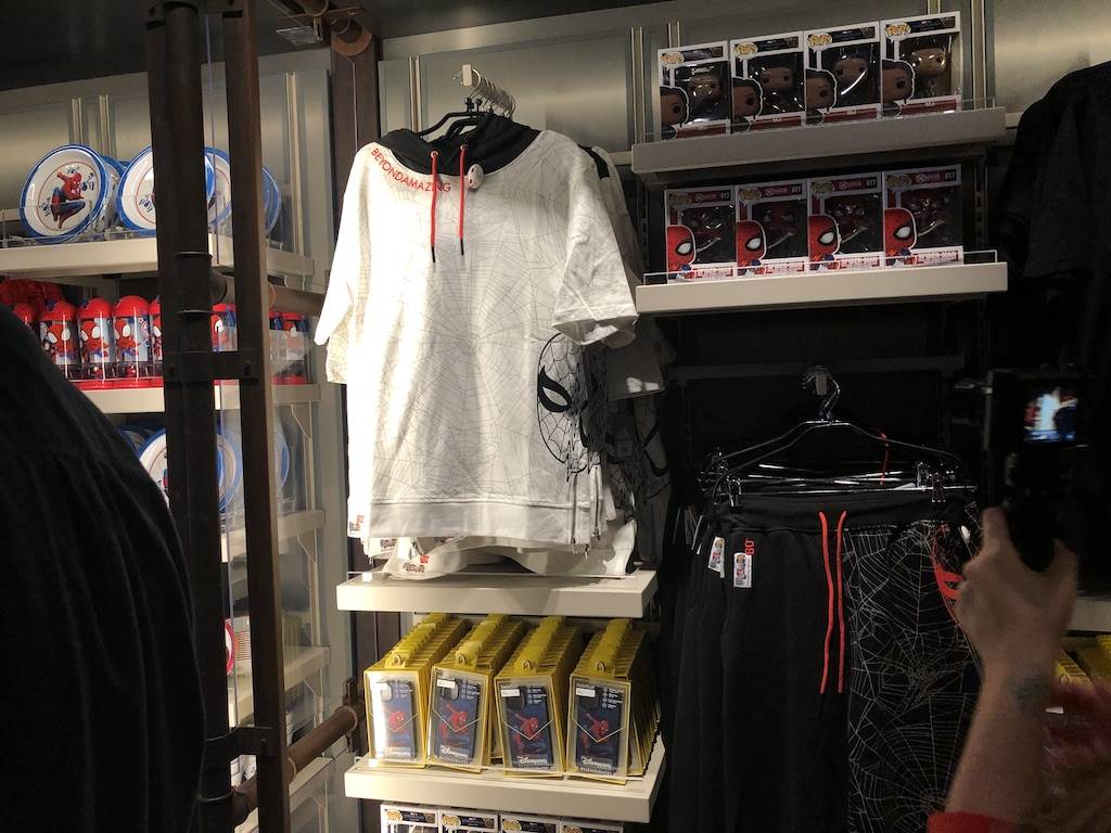 Another attraction shirt for adults features Spider-Man in mid jump as he’s identified by a scanner. Also in the same section are Spider-Man sweatpants and a short sleeve hoodie that are part of the Beyond Amazing collection celebrating the character’s 60th Anniversary.