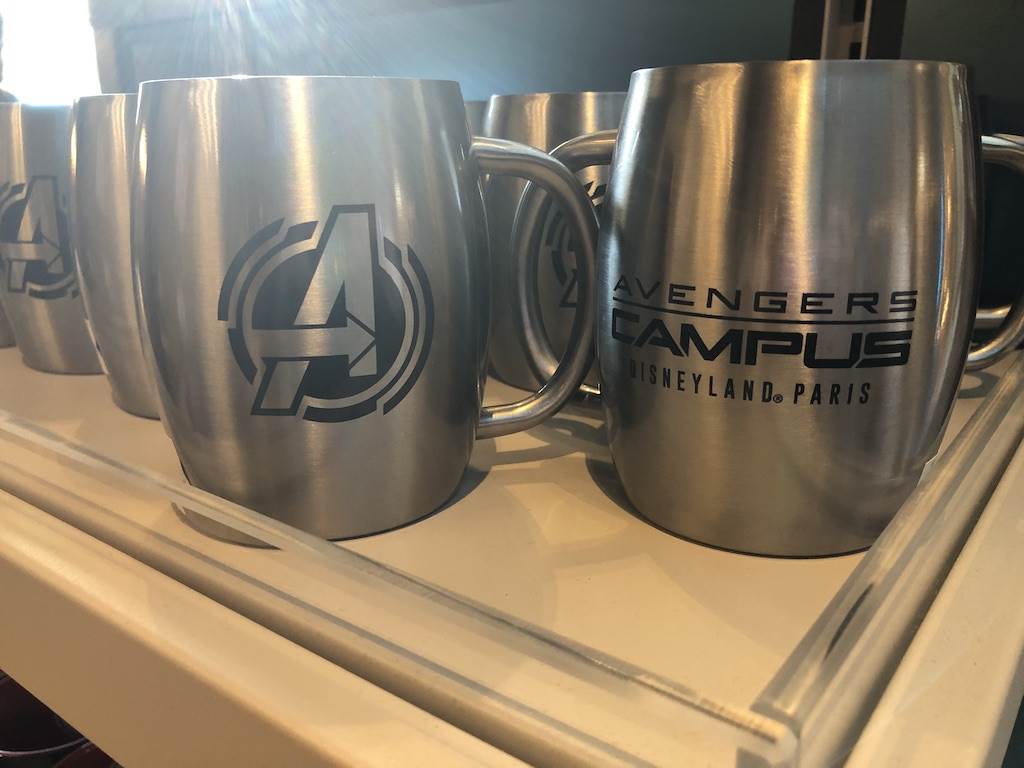 You can’t open a new land without some mugs! The first style shows Iron Man in front of the Avengers “A" on one side and the Avengers Campus opening on the other. As a bonus, this mug changes color when filled with hot liquid! Another option is the lightweight stainless steel mug (20,00€) that also includes the logos.