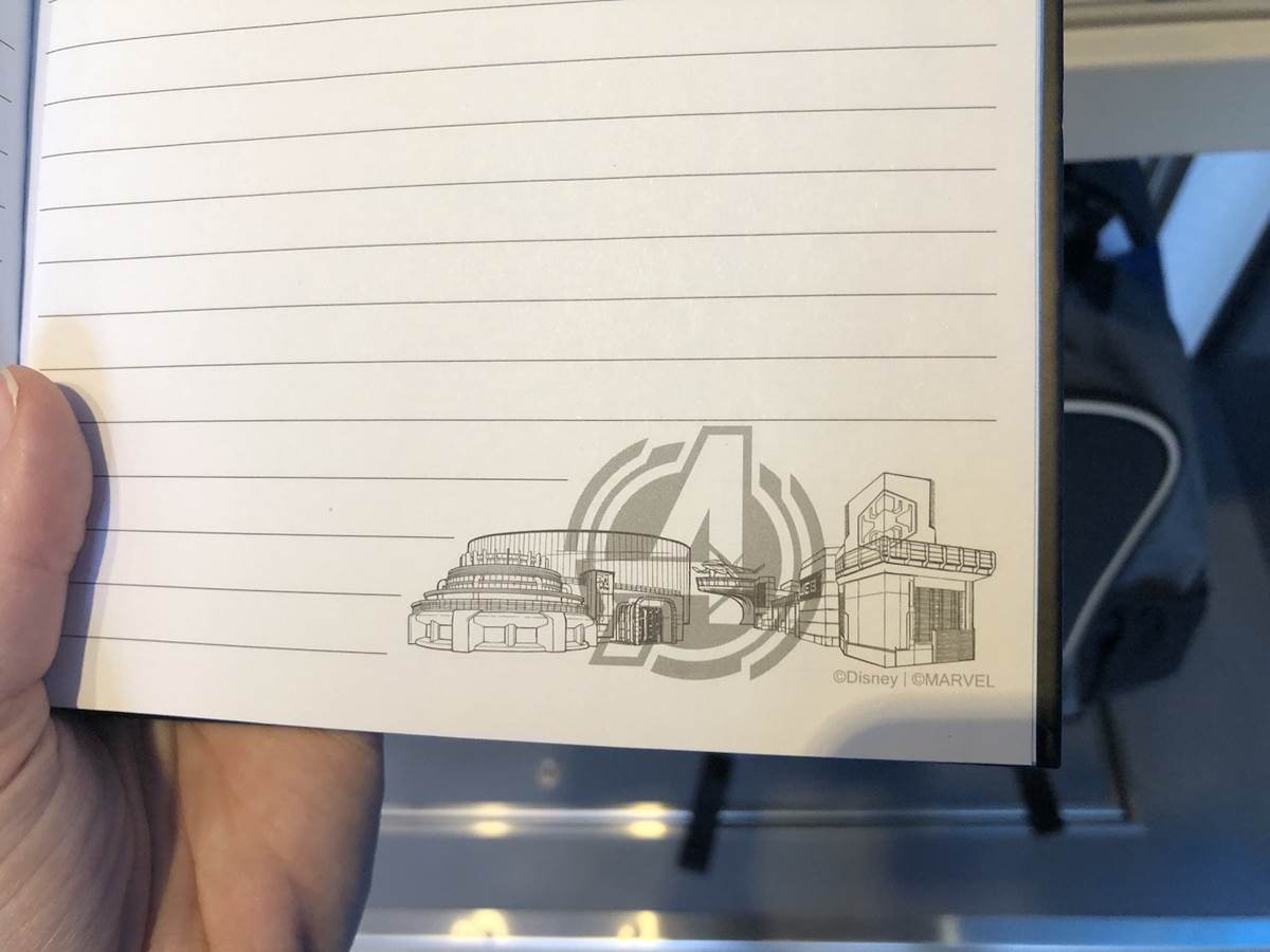 Additional logo merchandise includes a heather grey t-shirt (20,00€) featuring Iron Man and the land’s opening date, a journal (13,00€) with the Quinjet on inside covers and Pym, Flight Force and WEB buildings on the bottom of each page,