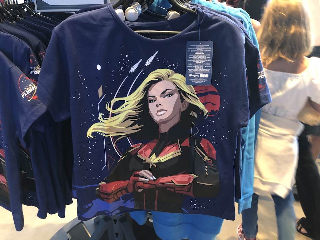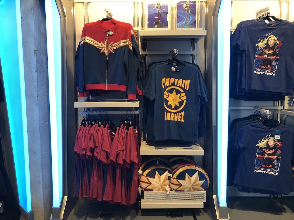 In addition to all of the Avengers specific merchandise, guests can also pick up a variety of character themed apparel, accessories and memorabilia. Captain Marvel is represented on tees, a pillow, and a jacket.