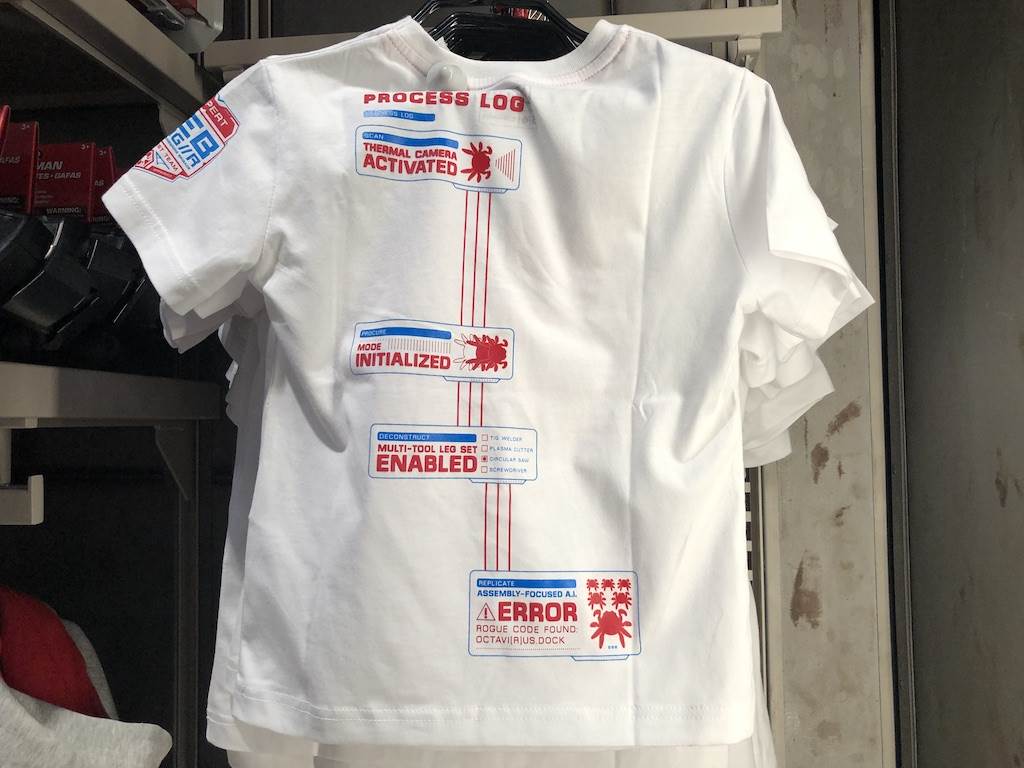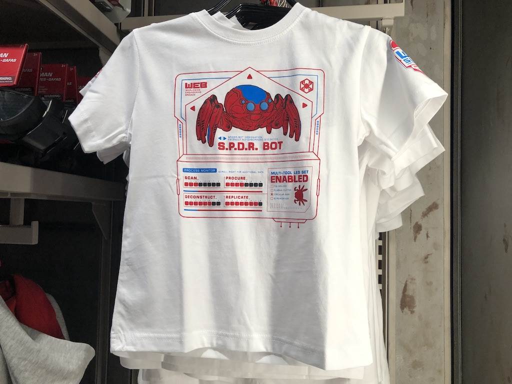 In terms of apparel, adults and kids alike will have styles to choose from including this S.P.D.R. Bot tee that little ones can rock. The back even features a “Progress Log" showing how things on the attraction went from bad to worse!