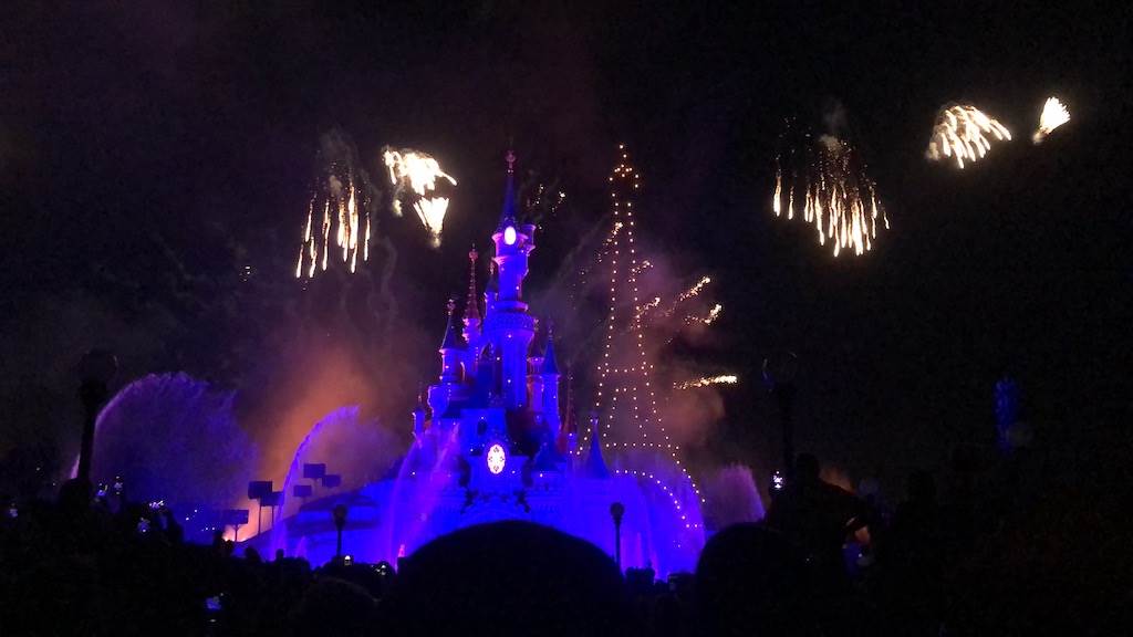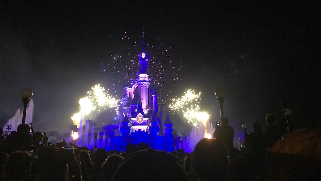 Considering this was a fireworks show, there weren’t any castle projections, but lighting effects and water fountains were used on cue to enhance the presentation. One of the best moments was when a Ratatouille medley was playing and the drones recreated the Eiffel Tower right next to the castle. Two Parisian icons next to each other set to a lovely Parisian score? Who could ask for anything more?