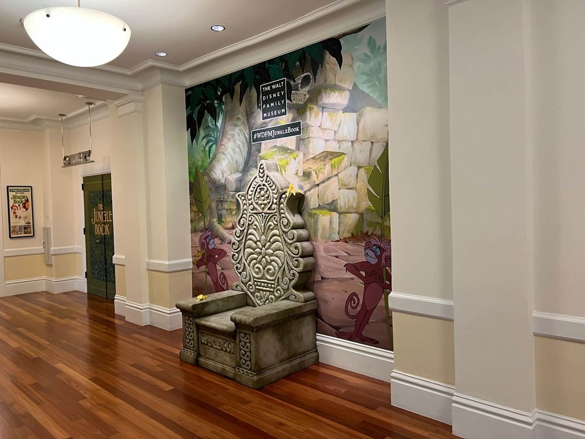 Beyond production artwork, photos, marketing materials, and a display of merchandise tie-in items from the film’s initial release, there are also a few fun photo ops, including the chance to take a photo in King Louie’s throne!