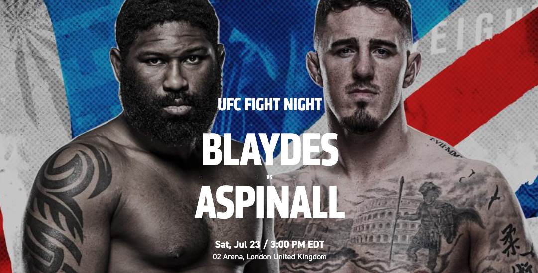 UFC Fight Night: Blaydes vs. Aspinall will be held Saturday, July 23 at 3 PM ET. Fight fans can watch live on ESPN.