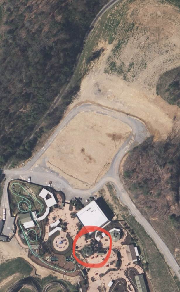 The text also says that the bear was spotted just north of the Wildwood Tree of Wildwood Grove. That little detail reveals a massive chunk of land when looked up on satellite maps that has been cleared and sits….just north of the Wildwood Tree. This area can already be viewed on the Dollywood Express and also serves as the drone launching location as well as fireworks launching area for the park’s evening entertainment, like the Sweet Summer Nights show.