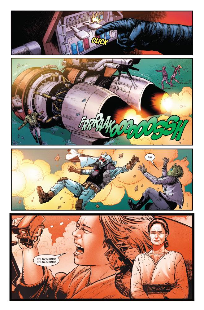 It all adds up thematically to what Pak is going for here, but it does feel a little like these flashbacks have become overused in this title in lieu of filling its pages with fresher content. I haven’t even mentioned the scenes from Attack of the Clones at the Tusken Raider camp and during the Battle of Geonosis, but when we finally do cut back to Vader arriving at the location where Sabé has fallen, we start to understand what it all means when put together. For better or worse, Vader has seemingly found a hint of companionship again in Sabé, and he’s willing to go through hell to prevent losing her in the way he lost both his mother and wife. But the final page here is really where it gets interesting– Emperor Palpatine, working from the shadows once again, is apparently intent on disallowing Vader even this one minor personal victory. And despite the overreliance on flashbacks to material that we’ve (mostly) seen before in other media, I think Darth Vader # 26 is an effective issue with a tantalizing ending that has me clamoring to find out what happens next. I can’t fathom Vader’s pseudo-alliance with Sabé being permitted to go on for too much longer, but it’s been such a major part of this title’s run that it’s hard for me to imagine what could be coming after it. No matter what, I still have a tremendous amount of faith that Greg Pak and artist Raffaele Ienco will deliver something interesting and worthwhile over the coming months.