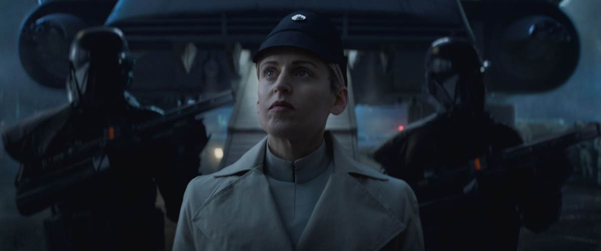 Like Kyle Stoller, Denise Gough also has fond memories of the series’ production design. “[My favorite memory was] the same set as Kyle was talking about– it was so intricate and so beautiful. You see, I don't have any Star Wars background. I never watched it. I was so into Batman as a little girl, I didn't have any connection to the Star Wars universe, really. Then I'm standing there and I have this really cool coat on and my gun. And then I'm given two Death Troopers who are walking behind me, and I started [humming the ‘Imperial March’], and then all the extras started [moving around], so suddenly I'm walking through this set and I'm thinking, ‘Even I, as somebody who is not in any way an aficionado of this stuff, I cannot believe that I'm here doing this.’ Then just over the last week, I'd kind of forgotten [I’m in] Star Wars, and then suddenly you're introduced, the trailer comes out and the poster, and I'm like, ‘Oh my god, my nephews are going nuts.’ Now it's just like, ‘Oh my god, I'm in Star Wars.’ [laughs] I wish I knew more about it. So I'm gonna study… I'm gonna study."