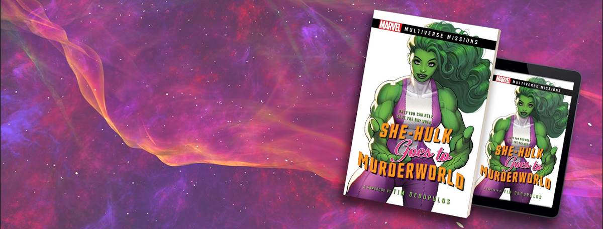 She-Hulk Goes to Murderworld, from author Tim Dedopulos, is part of Aconyte’s Multiverse Missions line and it’s a choose-your-own-adventure book that puts you side by side with She-Hulk. It’s an incredibly fun experience that allows you to decide how the story will play out.