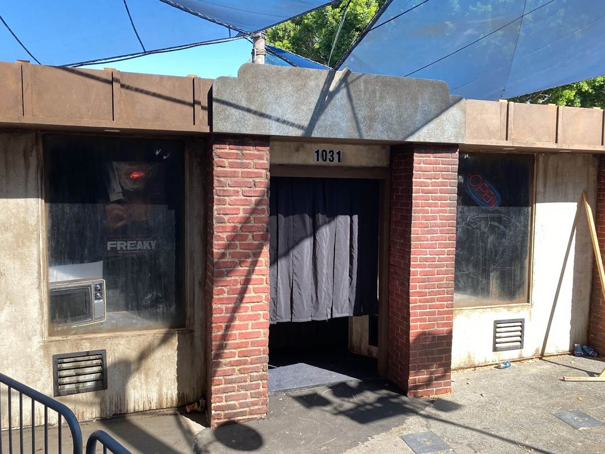 “This is our third Blumhouse compilation house that we’ve done at Horror Nights, although we started working with Blumhouse back in 2013 the first time we did Insidious," began Murdy as he began our walking tour of this year’s “The Horrors of Blumhouse" haunted attraction. “We’ve had a long relationship working with Jason Blum and his company. A couple things that are different this time around: the previous two ‘Horrors of Blumhouse’ experiences that we created, we always set it in a movie theater– it was always a ‘Horrors of Blumhouse’ film festival. The reason we changed it this year is the location. It used to be in the Parisian Courtyard, and then once it was downstairs on the Backlot. But this year, as we were shuffling the slate around and figuring where we were going to put things, we decided to put it here in the Waterworld location. It has this big permanent shade structure, so we couldn’t build the facade that we’d built before, but that gave us an opportunity to create something new. So literally as a joke, my art director says, ‘The movie theater’s not going to fit. Why don’t we do a video store?’ And I was like, ‘That’s brilliant,’ for a couple of reasons. One: I worked in classic mom-and-pop video stores from the time I was in high school all through college. Even when I started at Universal, I still worked there on the weekends."