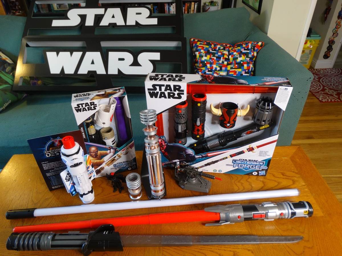 - Star Wars: Lightsaber Forge - Darth Maul (Masterworks Set) ($32.99) Features Darth Maul-inspired design and deco, so kids ages 4 and up can imagine epic pretend Lightsaber battles in the Star Wars Galaxy. The Lightsaber Forge Darth Maul electronic Lightsaber is comprised of seven parts -- two blades, two caps, two covers, and one core -- allowing kids to assemble their Lightsaber for imaginary duels. Featuring exciting electronic sound FX inspired by the Star Wars entertainment and 2 extendable light-up blades.