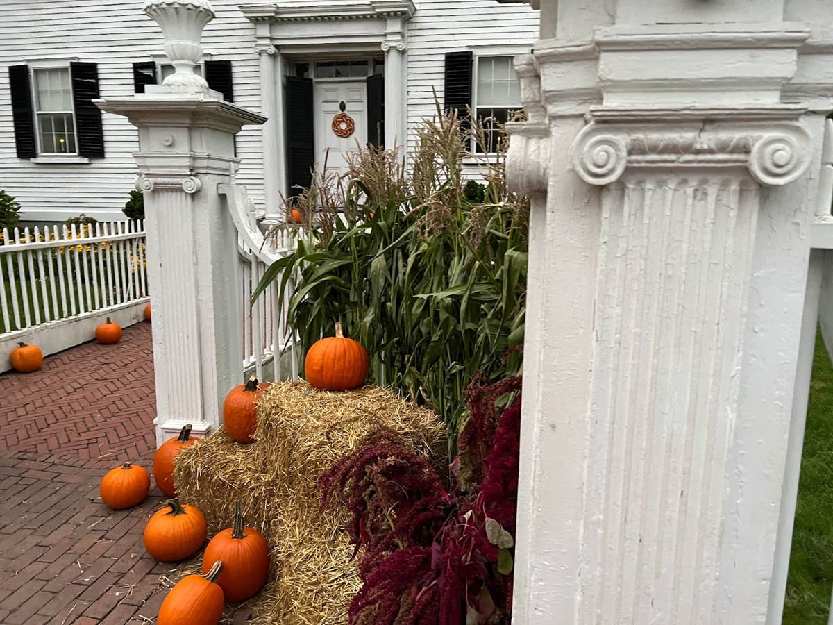 Speaking of Allison, her home in the film is a historic landmark known as the Ropes Mansion. It is cared for by the nearby Peabody Essex Museum and has a famous garden on the grounds. Special for this event, candles were placed in the windows along with hay bails and pumpkins to decorate it once again for Allison’s parents’ party.