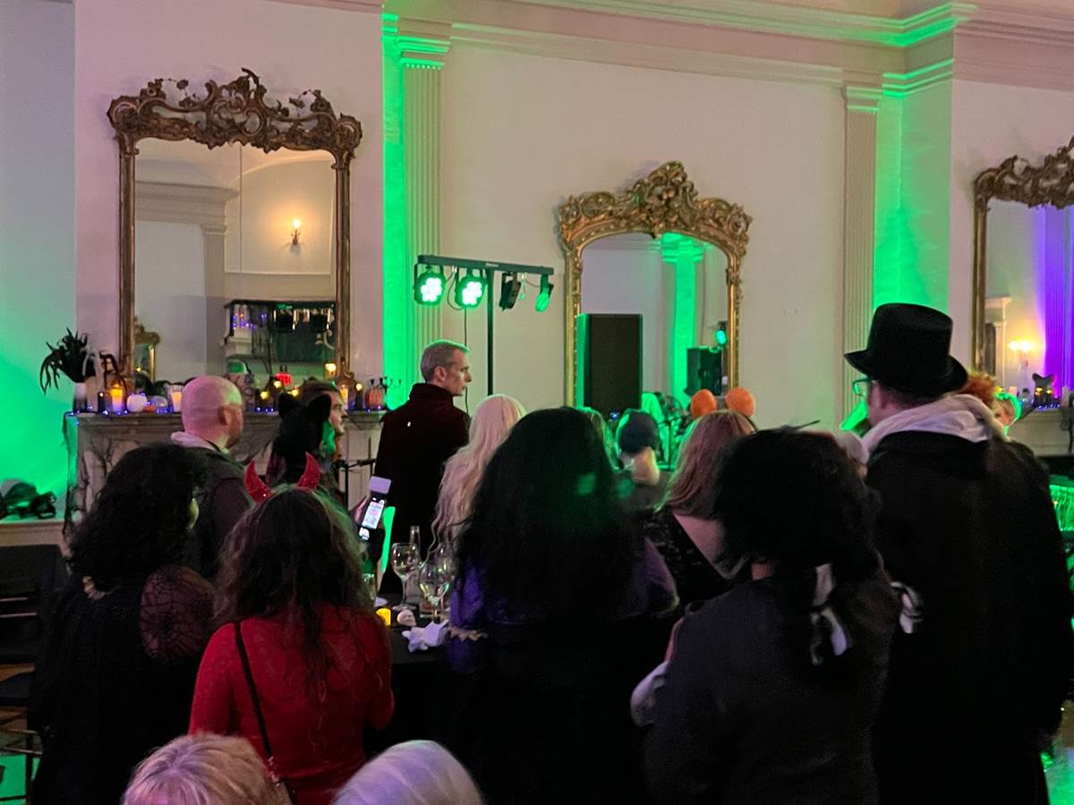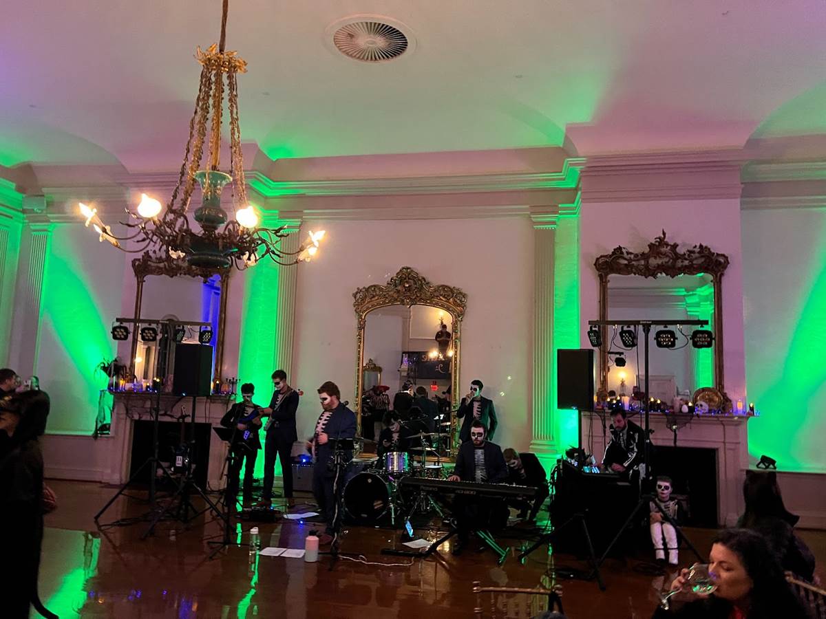 After the tour, it was time for the “Black Flame Ball," a 3-hour party at Hamilton Hall that featured a live band dressed like skeletons, just like the Halloween party the Dennisons went to.