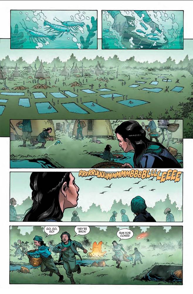 Star Wars: The Mandalorian #4 is an adaptation of the first-season episode entitled “Sanctuary," which just so happened to be mercenary Cara Dune’s introduction into the smash-hit live-action Disney+ series. I actually kind of forgot about that fact until I approached the scene in the comic where she initially pops up on the planet Sorgan. Then I started to wonder how exactly Marvel Comics– not to mention writer Rodney Barnes and artist Georges Jeanty– would handle the still-heated controversy surrounding Gina Carano and her character.