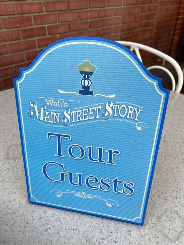 I checked in 15 minutes before my tour began at the Tour Gardens next to Disneyland’s City Hall in Town Square. I was provided with a credential for “Walt’s Main Street Story" and told that a treat would be given to all guests at the conclusion of the tour. As someone with celiac disease, I was very glad to learn that a gluten-free option was available as an alternative for the treat. There were also optional Disneyland-branded fans available for guests who might be feeling hot, as at least half of the tour takes place outside.
