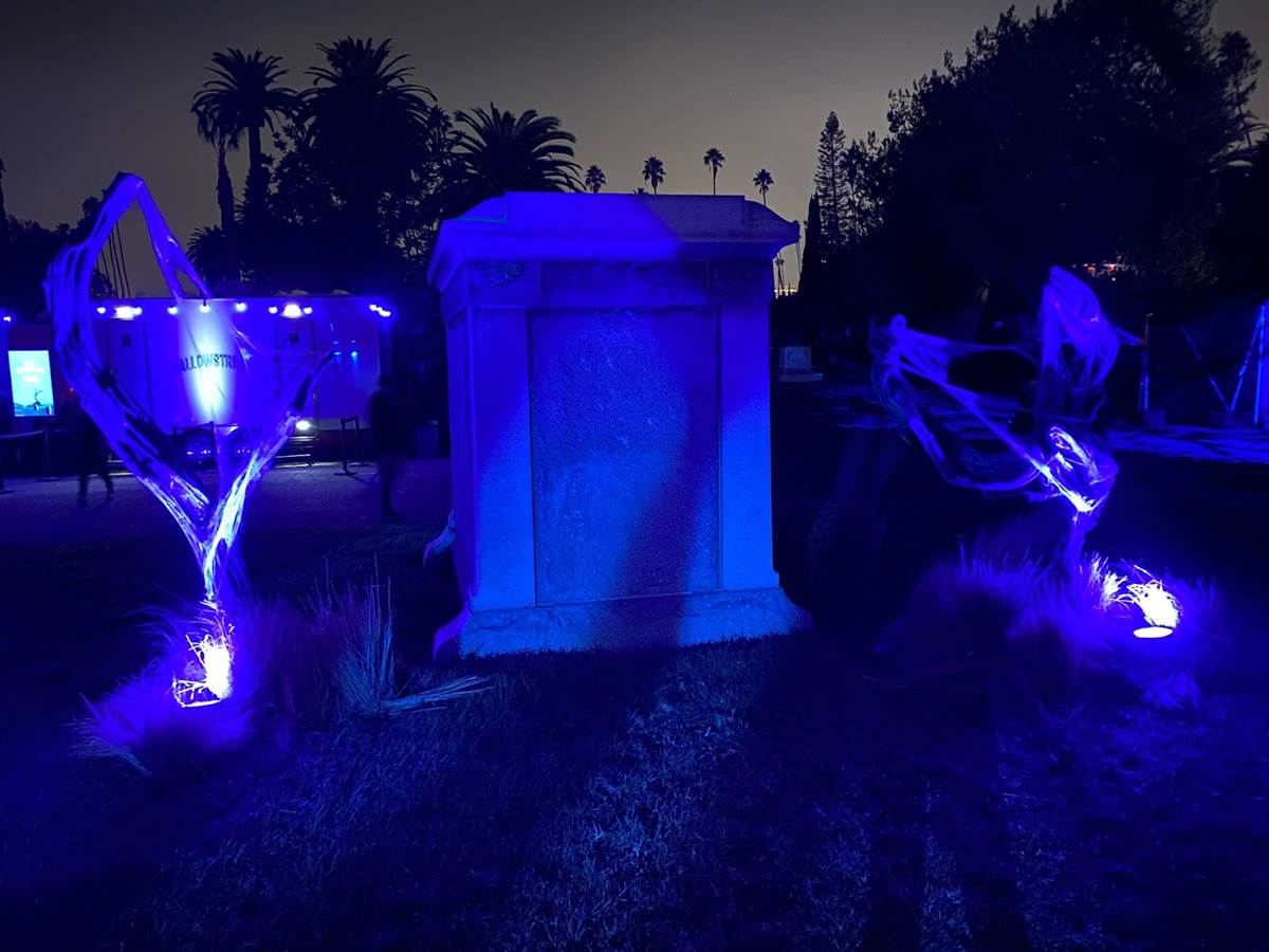After Hocus Pocus 2 ended, we explored the cemetery space a little more and enjoyed the atmospheric lighting setup installed for the Hallowstream event. We also stumbled across another photo op, this one tied into Marvel Studios’ “Special Presentation" Werewolf By Night, which would be playing the following evening at the cemetery. Also scheduled at Hollywood Forever for Hallowstream were the original Hocus Pocus (which played earlier Friday evening), Tim Burton’s The Nightmare Before Christmas, and the acclaimed Halloween episode of WandaVision (as a double feature with Werewolf By Night). Overall, we thought this year’s Disney+ Hallowstream event was a spine-chillingly good time at an incredibly cool venue in Hollywood.
