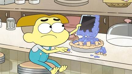 Elsewhere in the country, Cricket is trying to get a good WiFi signal to try and call his girlfriend, Gabriella, on his tablet. Gramma and Remy seem to having issues as well, with Remy’s tablet frozen on a recent face call with Vasquez while Gramma’s oddly satisfying pie crushing videos stalling long before they get to the satisfying part. Cricket ends up at Patti’s diner in the hopes that this public restaurant his WiFi that he can use. Alas, Patti doesn’t offer Wifi, and insteads suggests patrons “Try Pie." She believes that diners are a place where family and neighbors should be off their devices and talking with each other. Cricket misconstrues this though, and starts putting his tablet in the pie proper.