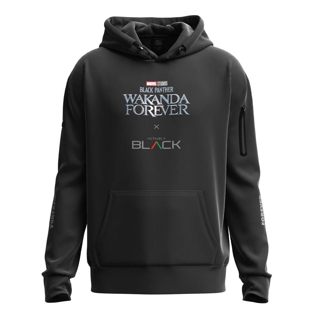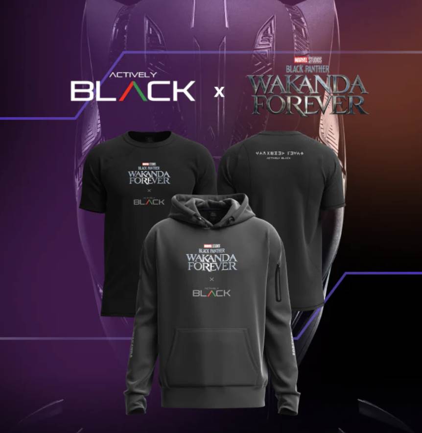 Three fashion drops. One incredible capsule collection. Actively Black has teamed up with Black Panther: Wakanda Forever and will present an exciting assortment of active wear for men and women. The first collection is available today and features a hoodie, joggers and athletic tee.
