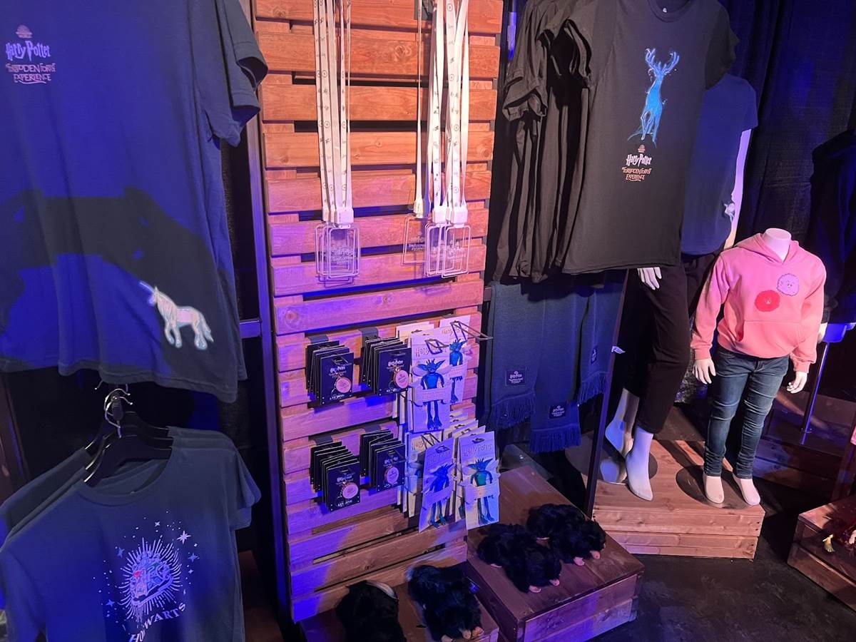The final gift shop includes some merchandise specific to the event, particularly apparel with the Harry Potter: A Forbidden Forest Experience logo on it and imagery from the event, like the stag Patronus.