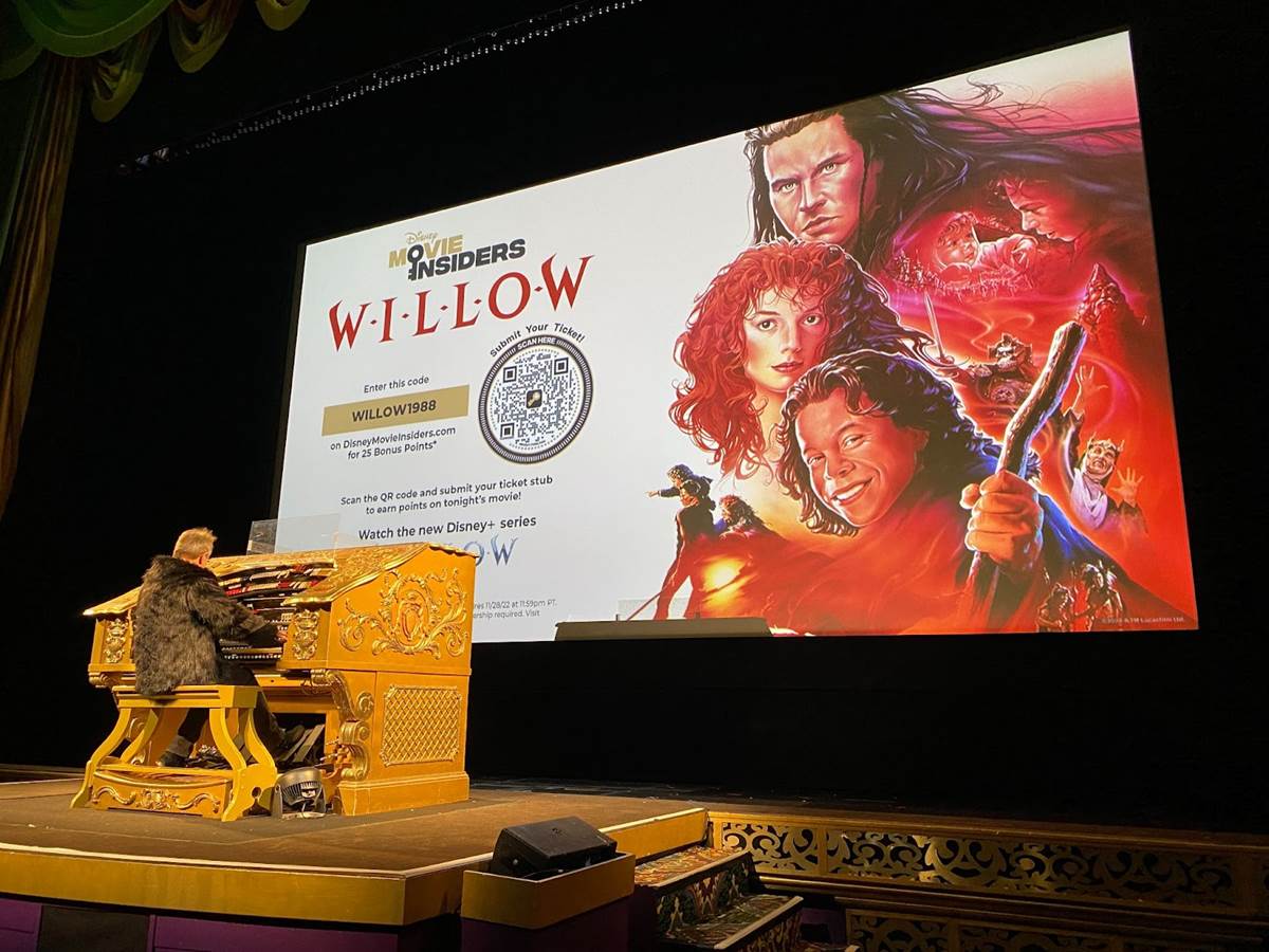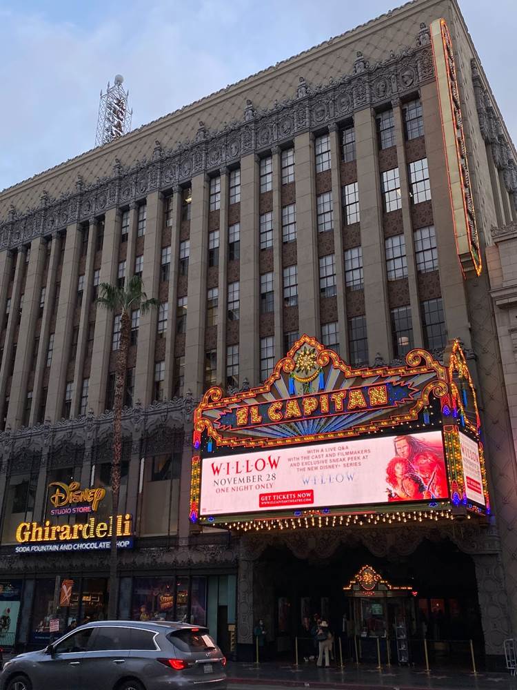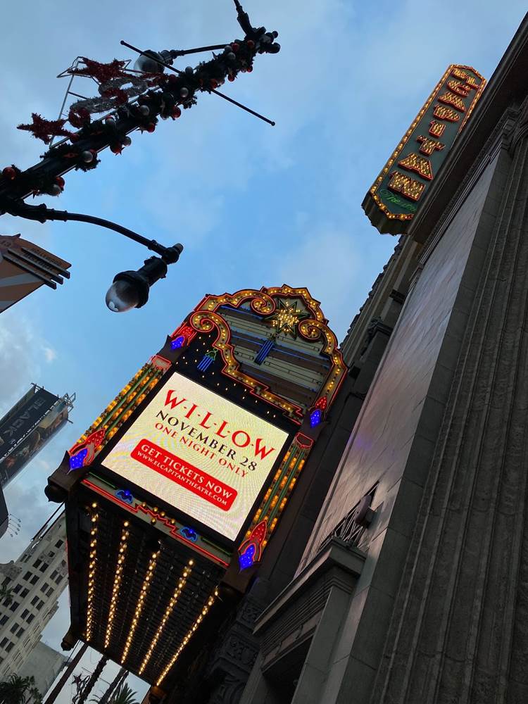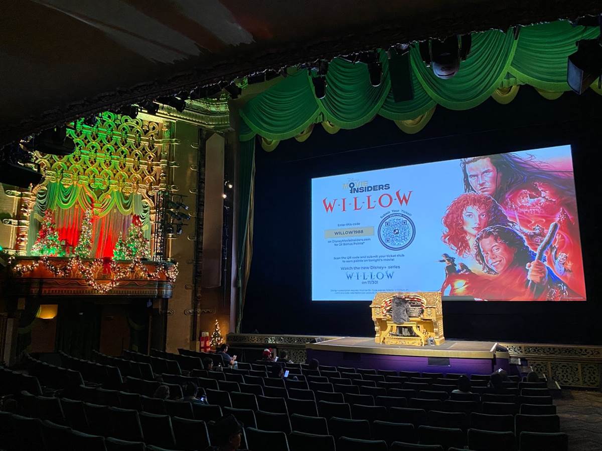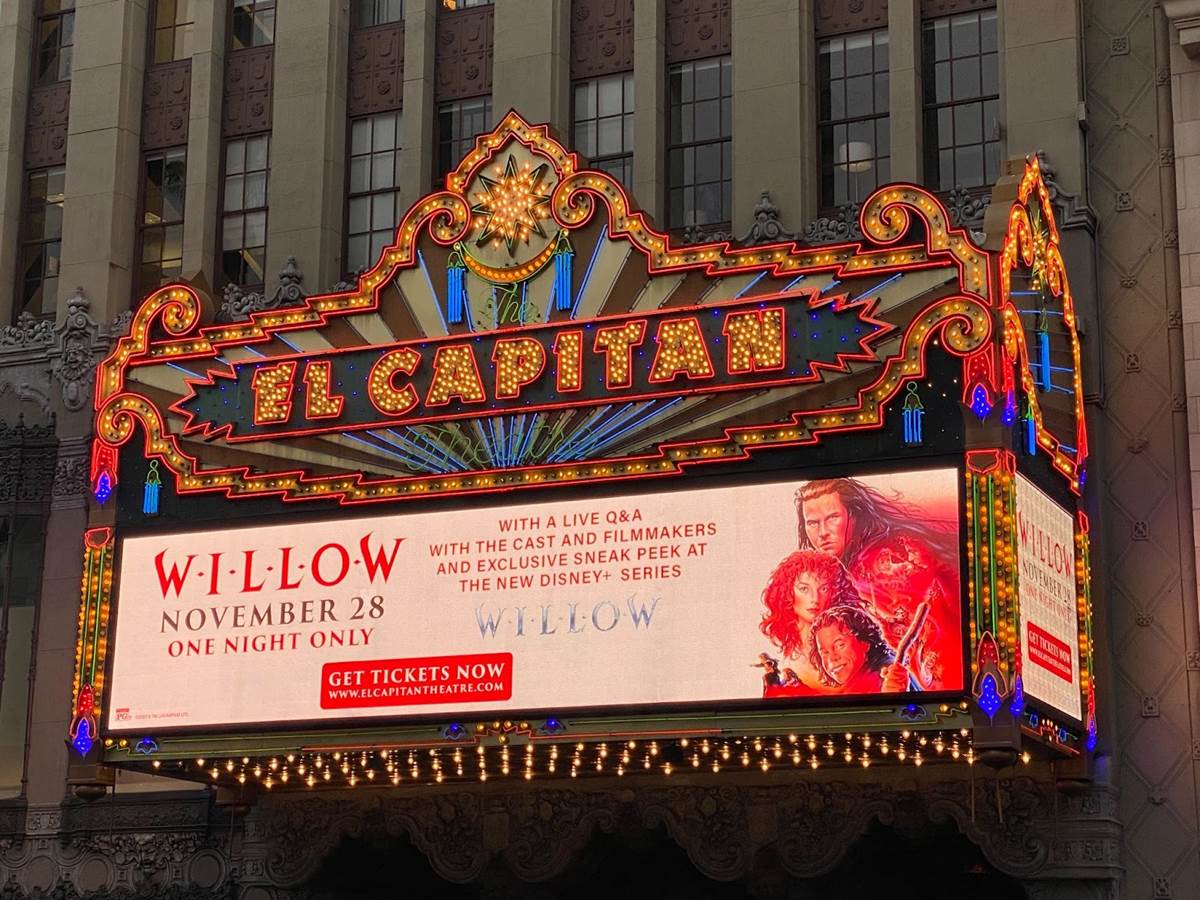 Rewinding time a couple hours, I arrived at El Capitan Theatre for its afternoon screening of the original Willow film to find the marquee and LED poster screens decorated with the 1988 artwork.