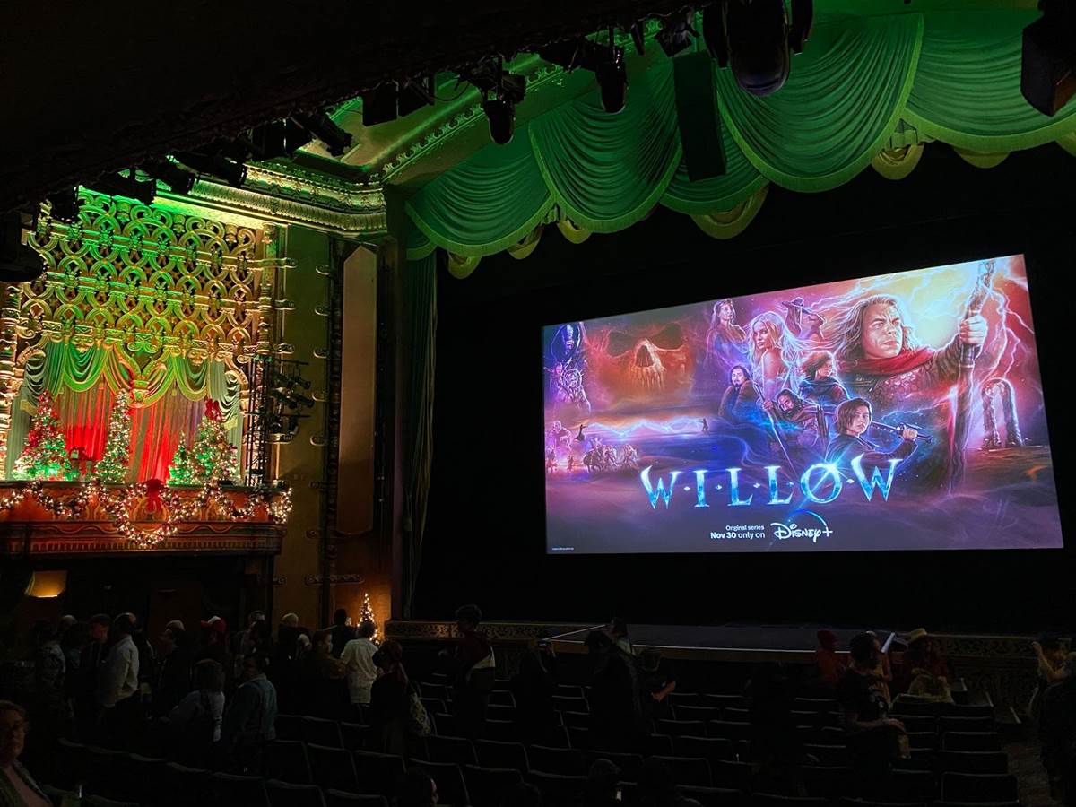 After the thrilling screening of the Willow movie in El Capitan’s usual state-of-the-art presentation, it was time for the Q&A session to begin. The cast and creative talents took the stage for a discussion that was being simulcast to theaters across the country. Then Jon Kasdan introduced a seven-minute sizzle reel made in promotion of the Willow series.