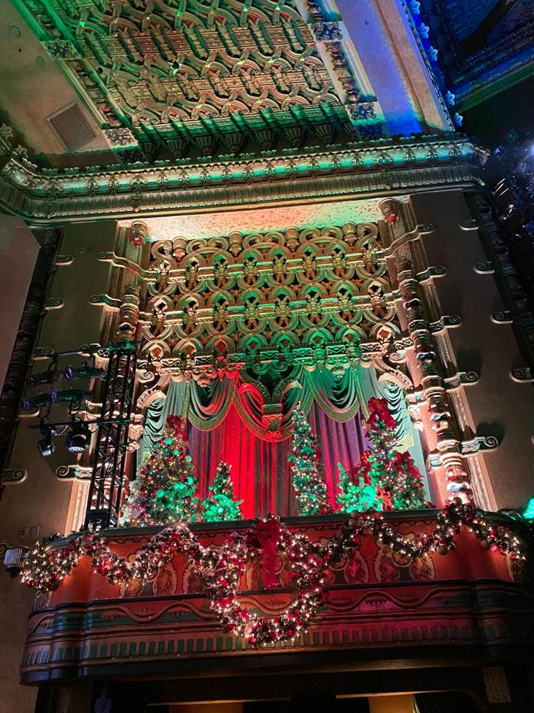 Inside the auditorium, the opera boxes are also decorated for the holidays, while organist Rob Richards entertained the crowd with his renditions of famous Hollywood tunes.
