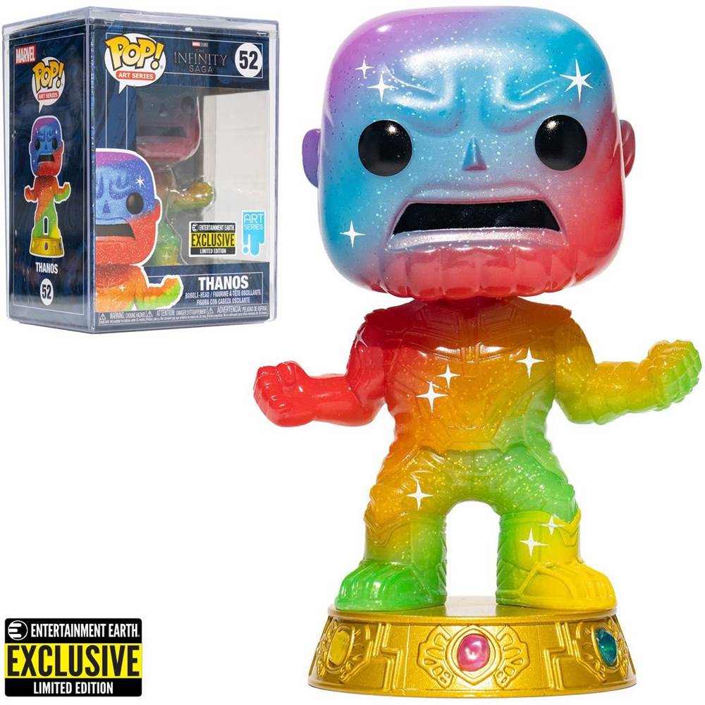 Many casual Marvel fans had no idea who Thanos was when he was introduced in the end credits of The Avengers. Now he’s practically a household name! Last summer Funko revealed the Avengers wave of their Art Series which focused on the original Avengers—Captain America, Iron Man, Hulk, Thor, Haweye and Black Widow—presenting them in glittery translucent colors of the Infinity Stones. Entertainment Earth had the honor of completing the series with a rainbow colored Thanos who’d successfully gathered all six stones.