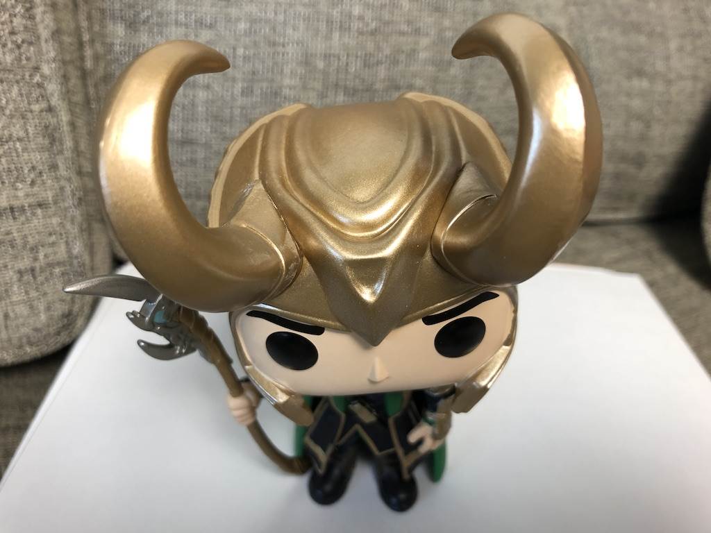 It’s always interesting to see something online and then actually have a chance to check it out in person, and Loki looks great. The figure is the standard size Pop! (about 4 inches tall, plus the height of his horns) and represents the character from his appearance in The Avengers where he was the main villain.